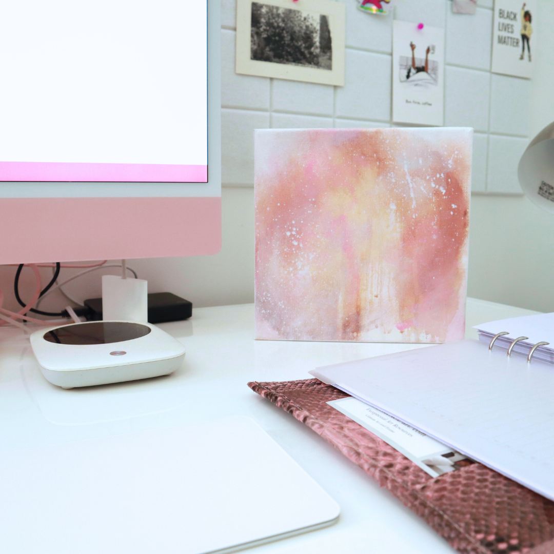 Experience the beauty of Roses in the Desert. Combining the soft shades of dusty rose and sand with hints of white, this piece captures the unique colors of the desert landscape. Bring the serene and majestic energy of the desert into your home with this gorgeous piece.